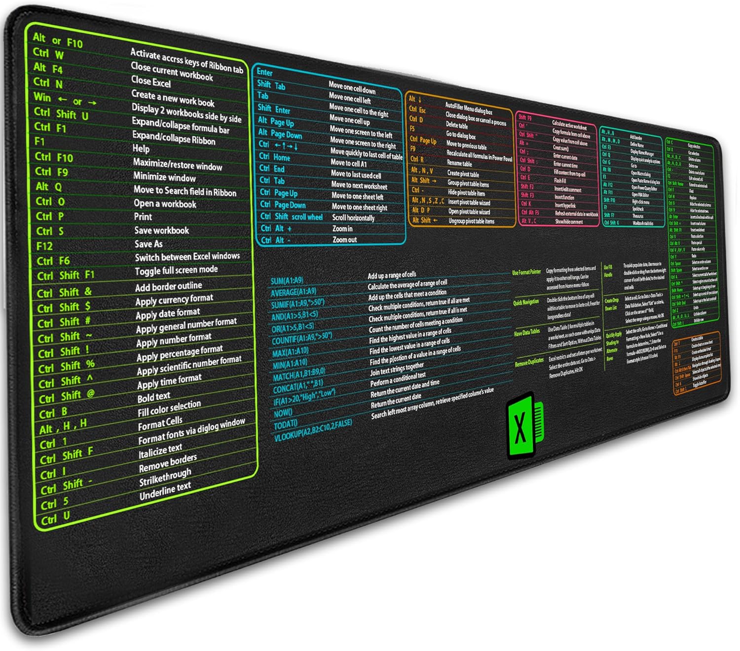 - Excel Shortcuts: Over 150 Excel shortcuts printed on the surface. This is perfect for anyone who frequently works in Excel, as it allows for quick access to key commands and functions without having to memorize them.