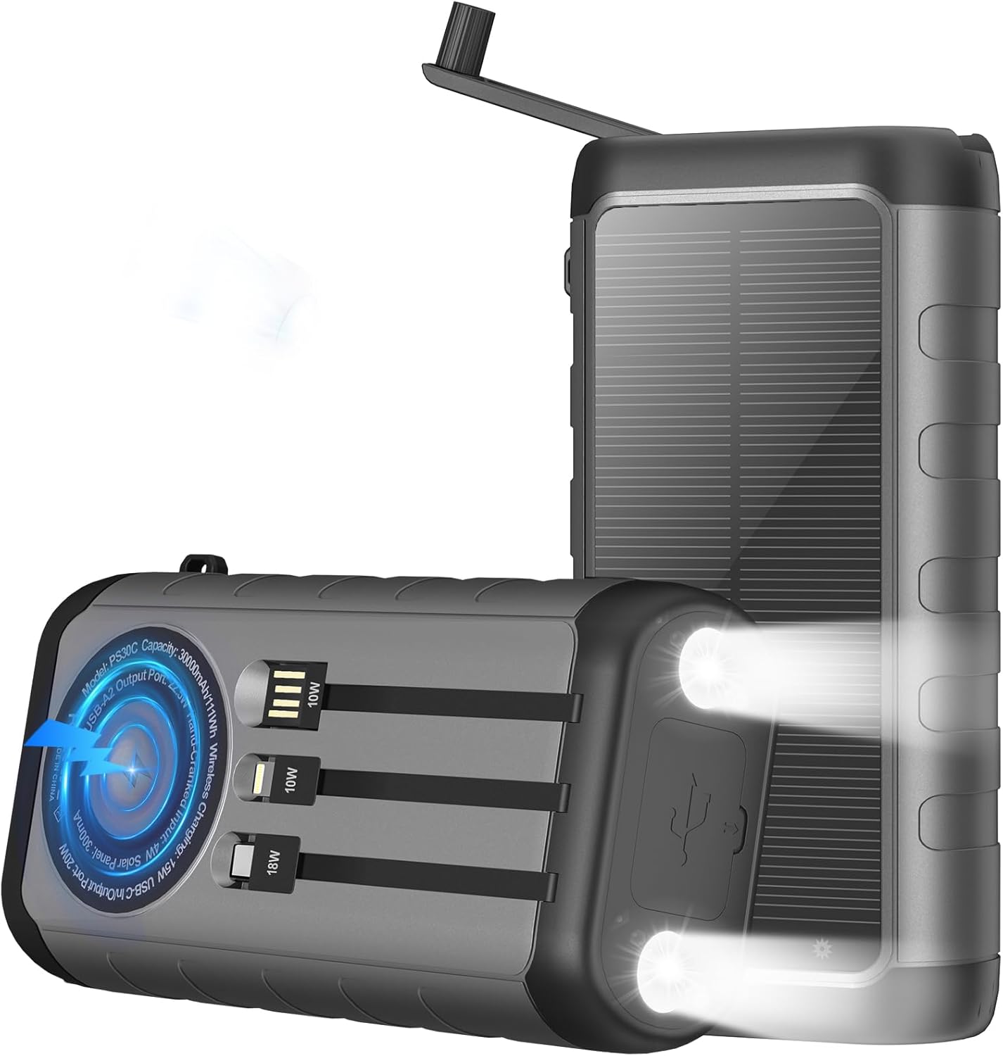 This isn't just a power bank—it's a survival tool. With solar + hand crank charging, wireless output, and rugged construction, it’s designed to keep you connected no matter where you are.