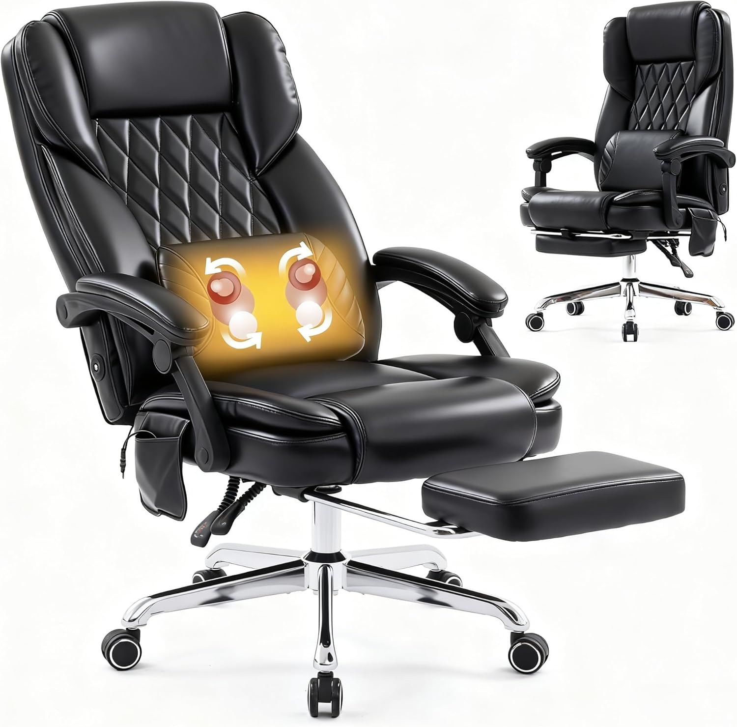 Kneading Massage Office Chair with Footrest – Reclining Big & Tall Leather Desk Chair | Adjustable 90–135° Backrest | Lumbar Pillow Support | Heavy-Duty Comfort