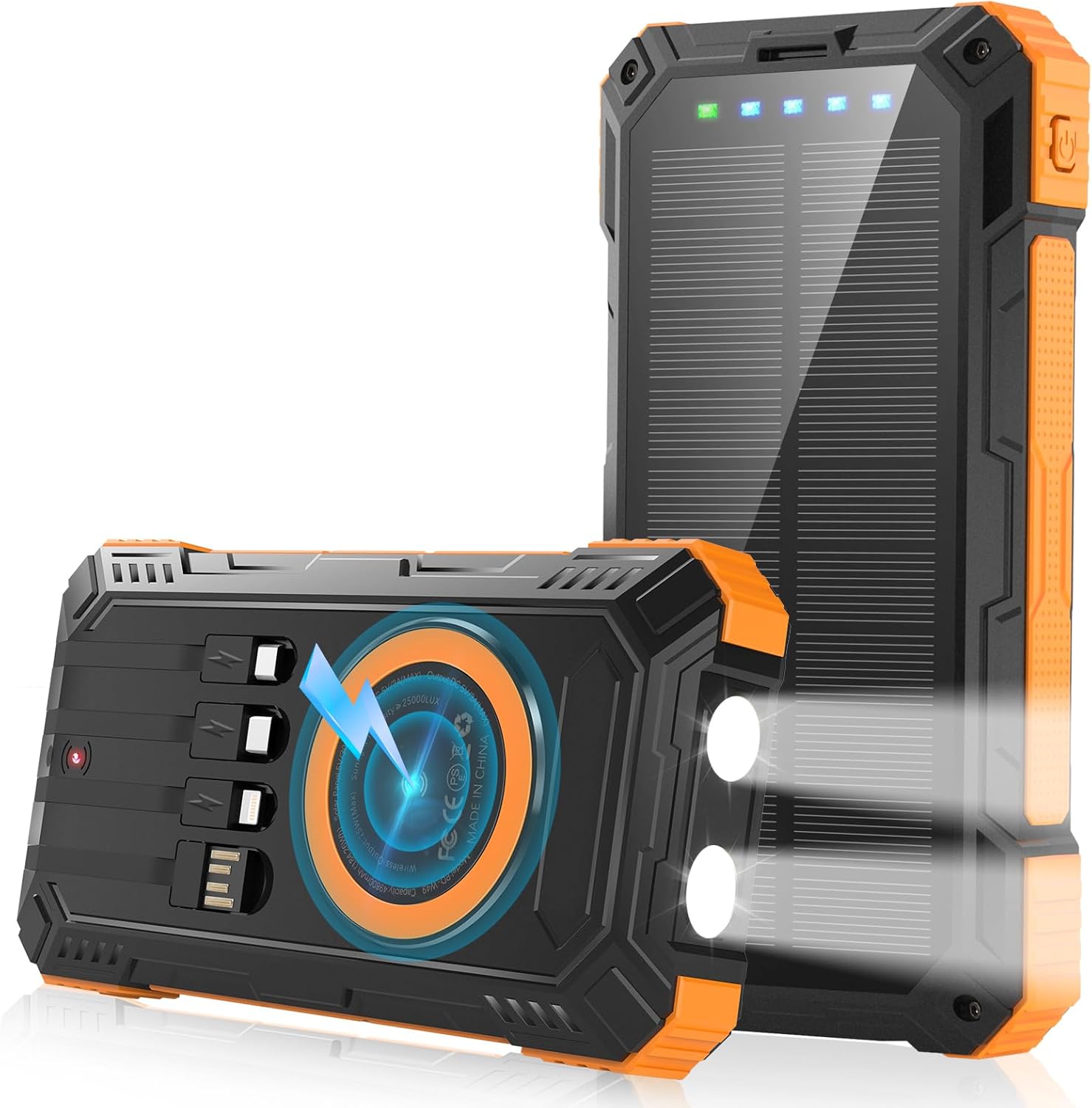 Stay charged and connected wherever your adventures take you with the Solar Power Bank 49,800mAh. Designed for outdoor explorers, travelers, and everyday users, this high-capacity power bank combines massive battery storage, wireless charging, and built-in cables for a truly all-in-one portable charging solution. Whether you’re hiking, camping, or commuting, you’ll never have to worry about running out of power again.